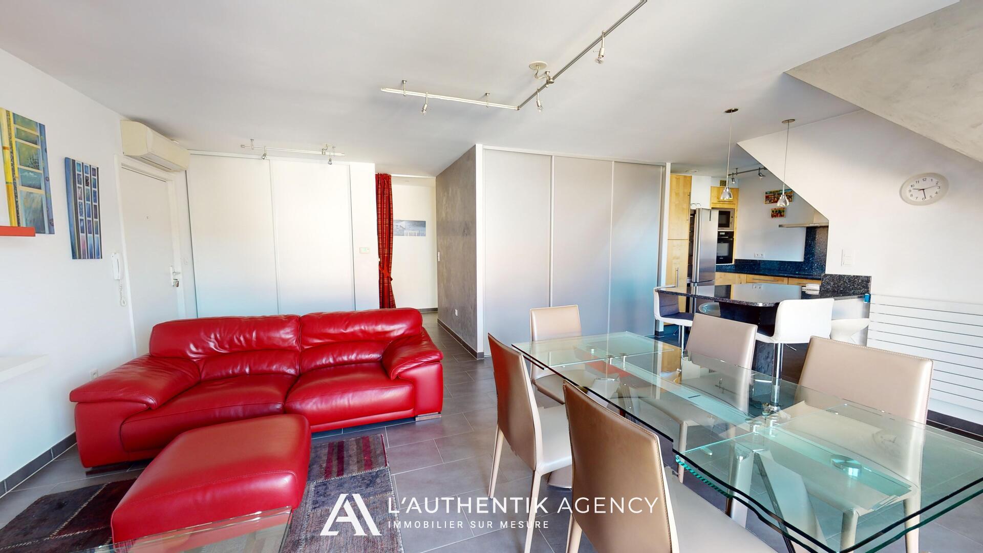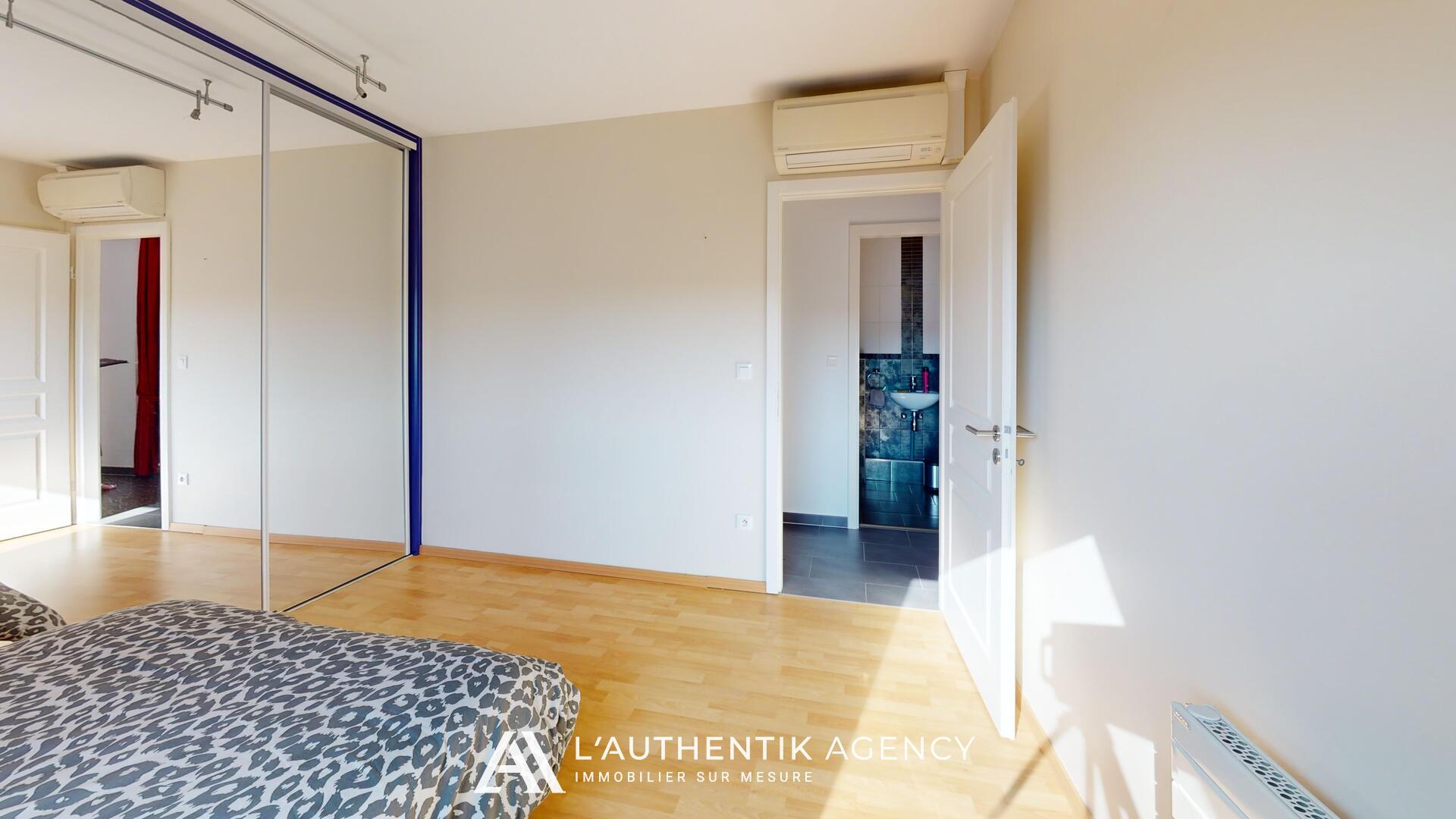 Il se compose d'une entrée avec un placard, d'une cuisine aménagée et équipée (mobilier, hotte, plaque, four, lave-vaisselle et réfrigérateur) ouverte sur le salon séjour et donnant accès à une terrasse de 15 m2 exposée ouest, de trois chambres équipées de placards, d'une salle d'eau et d'un WC séparé avec un lave-mains. Toutes les pièces à vivre sont équipées de la climatisation réversible.