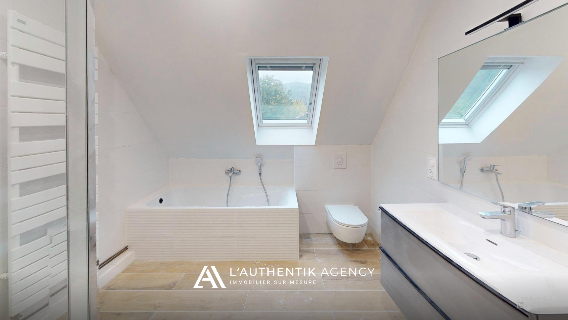 Située dans le quartier résidentiel d'Eichwaeldel, venez visiter cette charmante maison entièrement rénovée de 127,19 m2 de surface habitable, avec un jardin et une cour. Son emplacement offre le calme et la nature. Au rez de chaussée, elle se compose d'une entrée avec un placard, d'une cuisine indépendante aménagée et équipée et donnant accès à la terrasse, d'un salon séjour équipé d'un poele à bois, de deux chambres, d'un WC et d'une salle d'eau. A l'étage, vous découvrirez deux grandes chambres dont une avec un balcon et une salle de bain avec une baignoire, une douche et un WC. Le sous-sol se compose d'un garage, d'une cave et d'une chaufferie. La maison a été entièrement rénovée, isolée et le mode de chauffage est au fuel. Disponible mi décembre après les travaux de finitions. Loyer hors charges : 1200 € Provision pour charges : 50 € comprenant la taxe d'enlèvement des ordures ménagères, l'entretien de la chaudière et le ramonage du poele à bois. Dépôt de garantie : 1200 € Honoraires d'agence : 1143 € Pour plus de renseignements, contactez Sonia au 03.88.47.10.44 ou à contact@lauthentik.agency