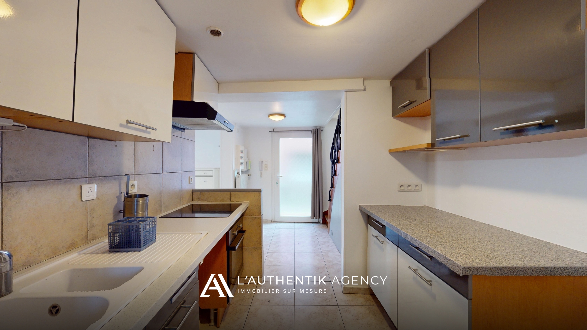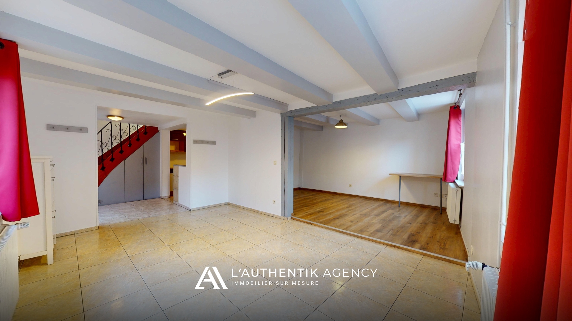 Au rez-de-chaussée, elle se compose d’une entrée, d’un salon-séjour lumineux, d’une cuisine équipée et d’une salle d’eau avec WC.