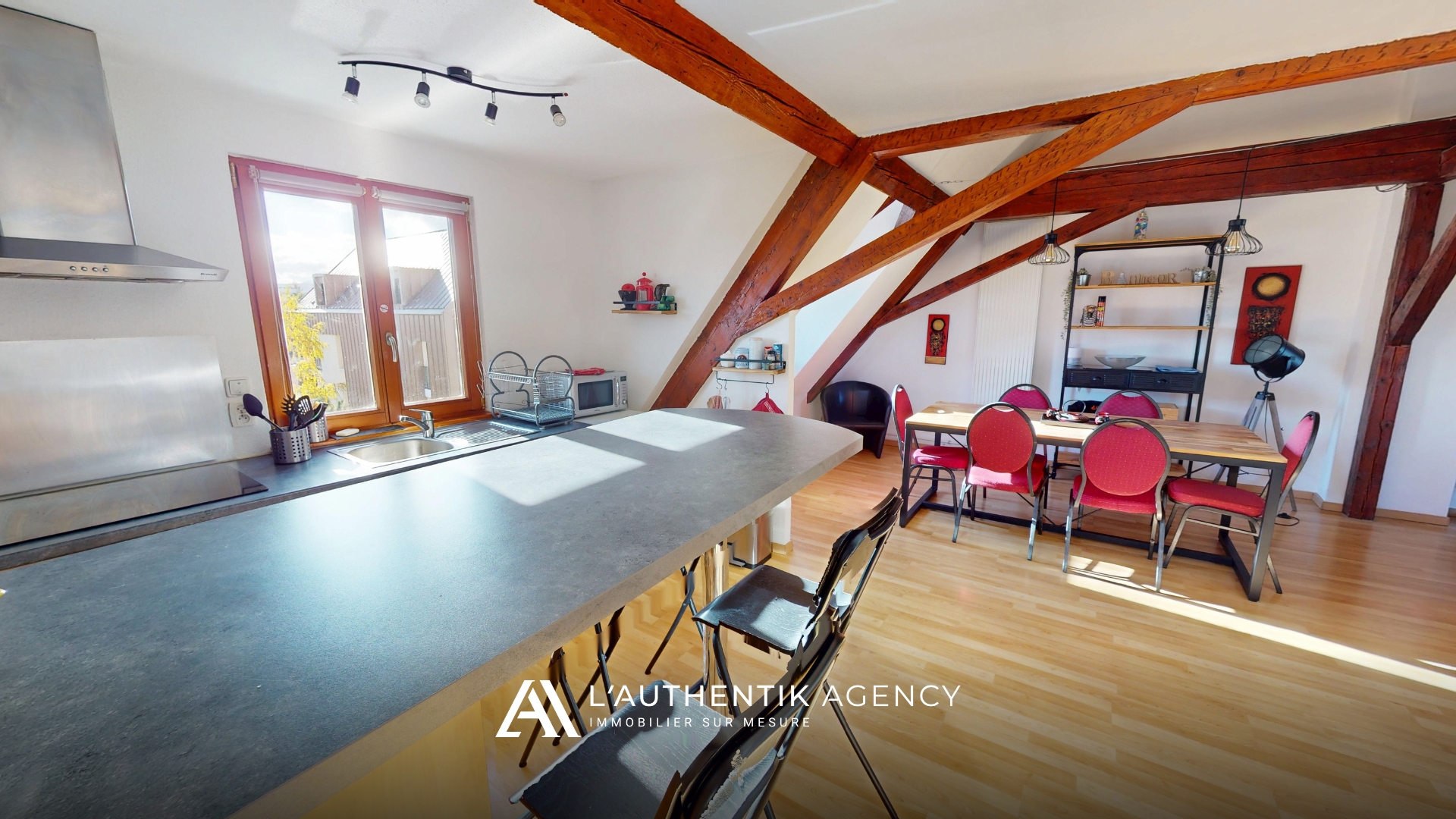 À Obernai, ce charmant T3 meublé en duplex de 63,55m² habitable combine le charme alsacien et des prestations modernes.